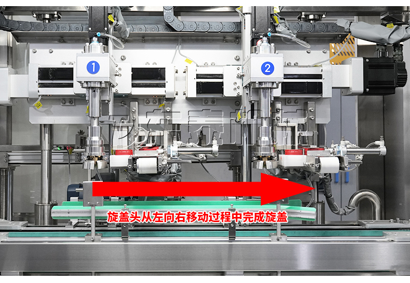 2、品質高:跟隨式旋蓋,旋蓋過程不停頓,不晃液,不污染瓶口、瓶身及輸送帶,確