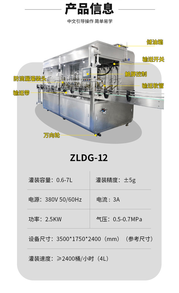 2.灌裝采用電機(jī)升降結(jié)構(gòu),不同規(guī)格灌裝時(shí)直接在觸摸屏上調(diào)整灌裝頭高度,一鍵完成,無(wú)