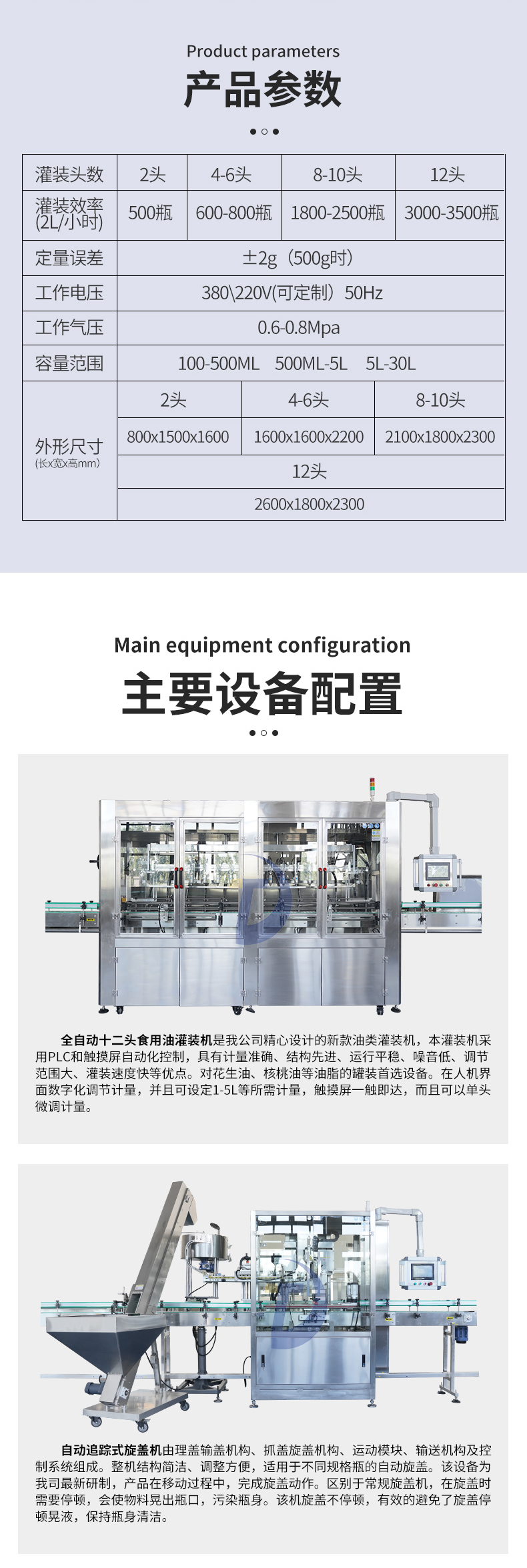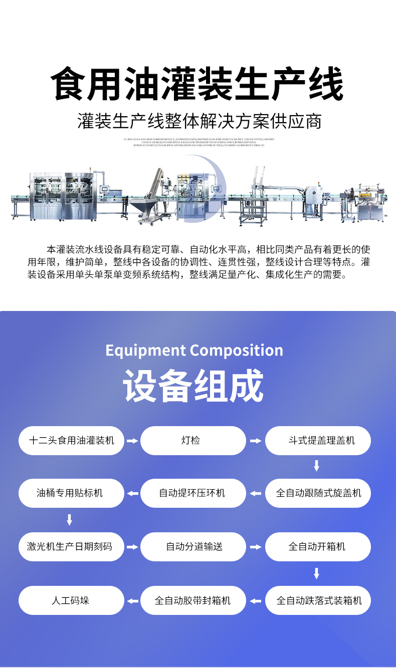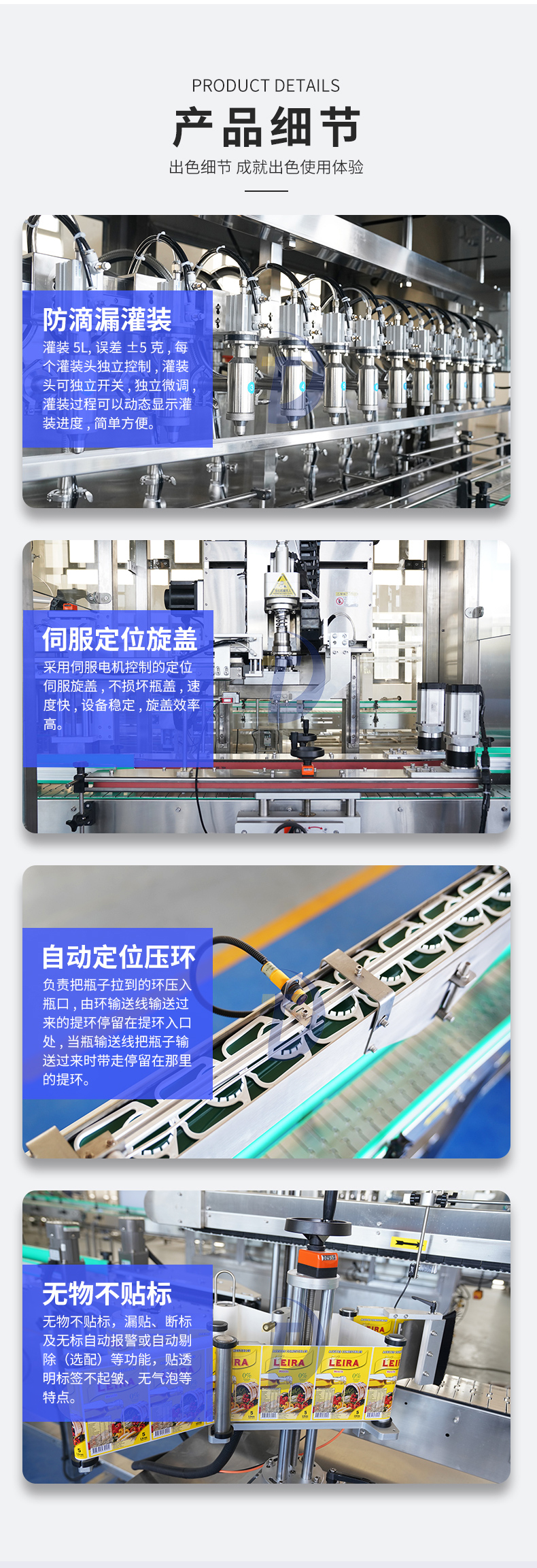 當油桶移動到灌裝頭下方時,灌裝頭會自動啟動,開始進行自動灌裝。在這個過程中,灌裝頭會感應油桶的存在,并根據(jù)設定好的參數(shù)自動進行灌裝。當油桶已經(jīng)達到預定容量后,灌裝頭會自動關閉,停止灌裝。